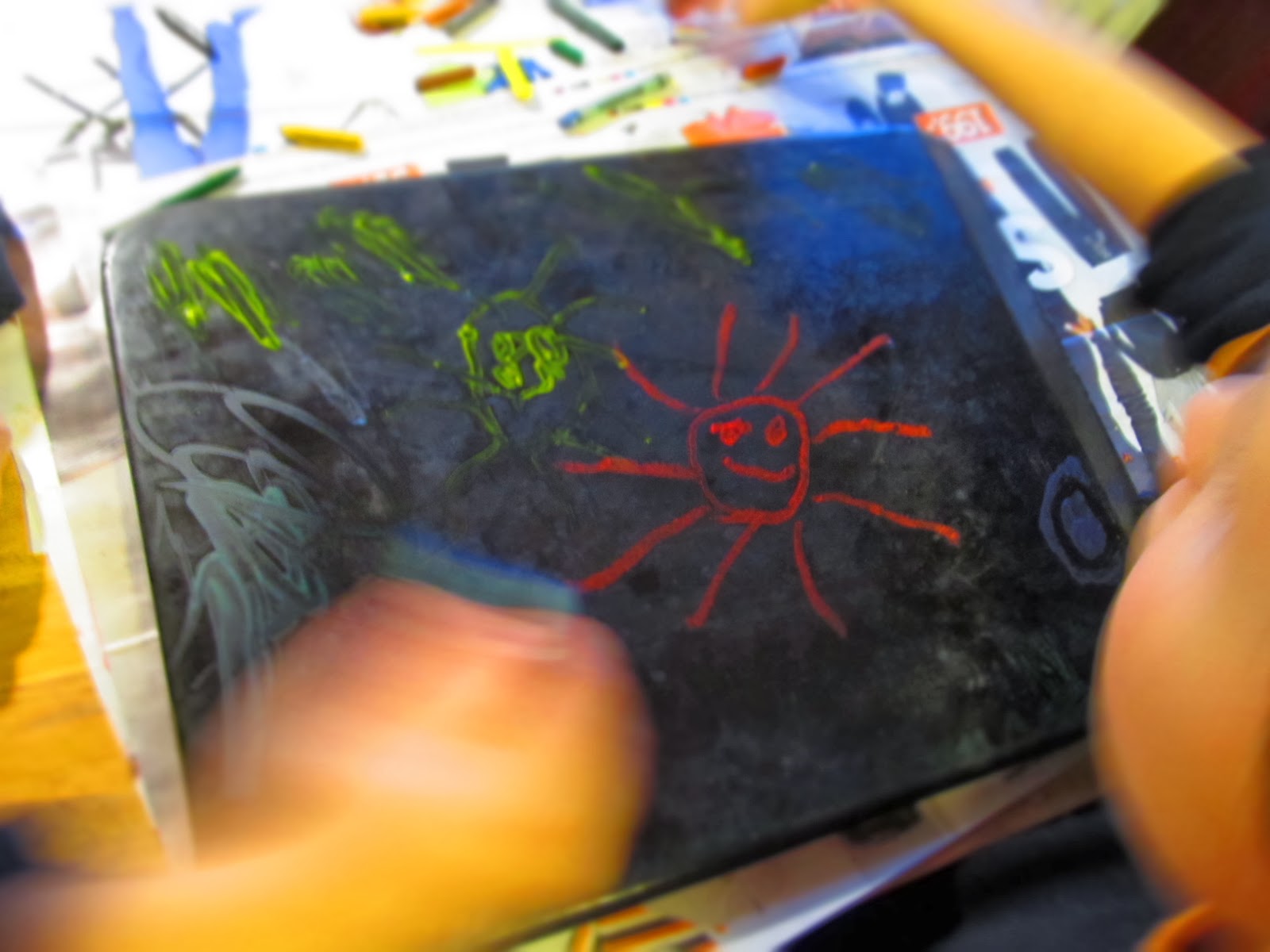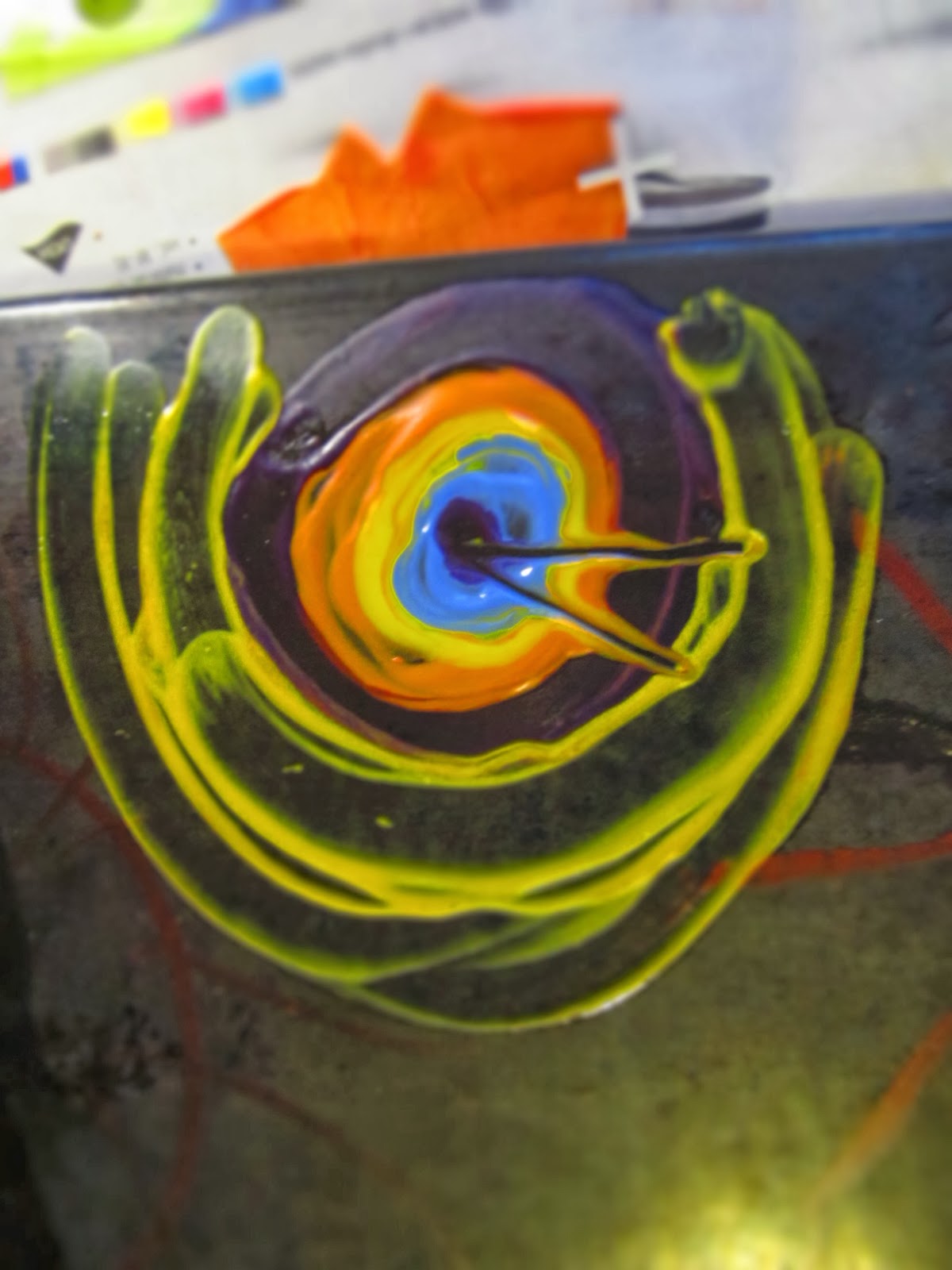 (Obarveno samozřejmě potravinářskými barvami. Doporučuji pro příště raději zůstat pouze u červené - potomci se zelenými rety vyhlížejí poněkud nezdravě.)